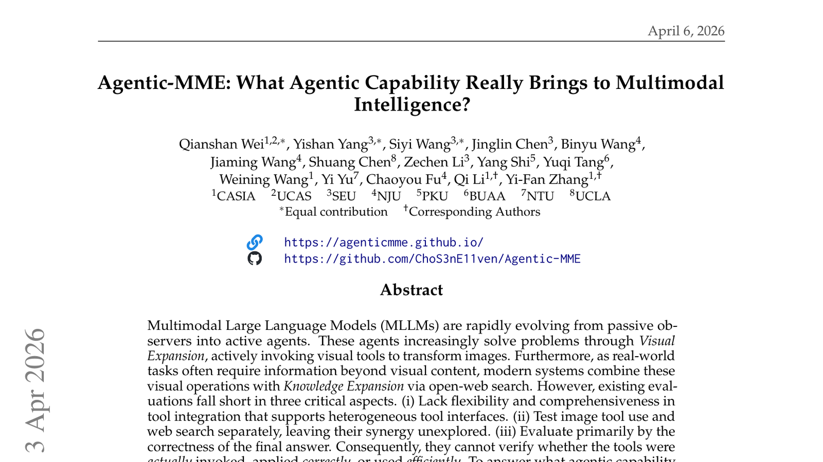 Agentic-MME는 멀티모달 인공지능(Multimodal Intelligence)에 '에이전트적 능력(Agentic Capability)'이 가져오는 진정한 이점을 탐구하는 연구입니다. 기존 멀티모달 모델들이 주로 정보 이해와 생성에 초점을 맞췄다면, 이 논문은 AI가 환경과 상호작용하고, 목표를 설정하며, 계획을 실행하는 에이전트적 특성을 멀티모달 맥락에서 어떻게 활용할 수 있는지 분석합니다. 에이전트적 능력은 AI가 단순히 정보를 처리하는 것을 넘어, 능동적으로 문제를 해결하고 복잡한 작업을 수행하는 데 필수적입니다. 이 연구는 멀티모달 에이전트가 현실 세계에서 더 효과적으로 임무를 수행하고, 인간과 더욱 자연스럽게 협업할 수 있는 가능성을 제시합니다. 궁극적으로 이는 자율 로봇, 가상 비서, 복잡한 의사결정 시스템 등 다양한 응용 분야에서 멀티모달 AI의 실용성을 크게 높일 수 있습니다.