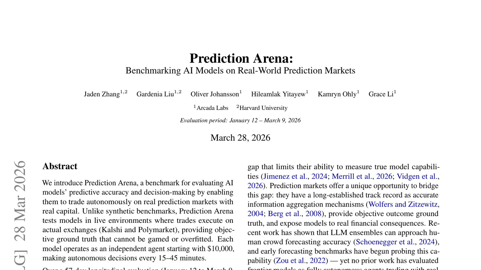 Prediction Arena: 실제 예측 시장 기반 AI 모델 벤치마킹
