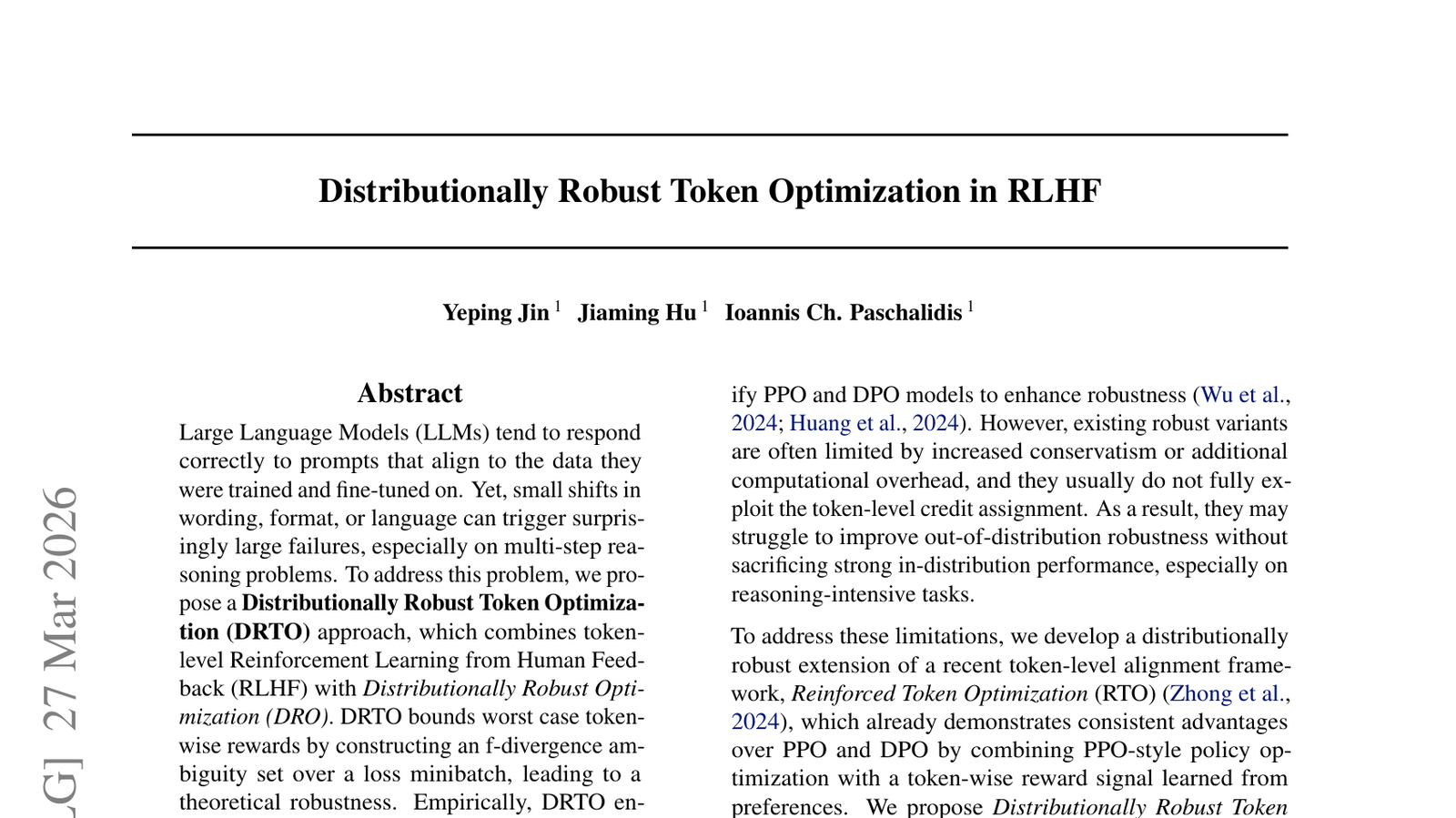 RLHF에서 분포적으로 견고한 토큰 최적화 (Distributionally Robust Token Optimization in RLHF)