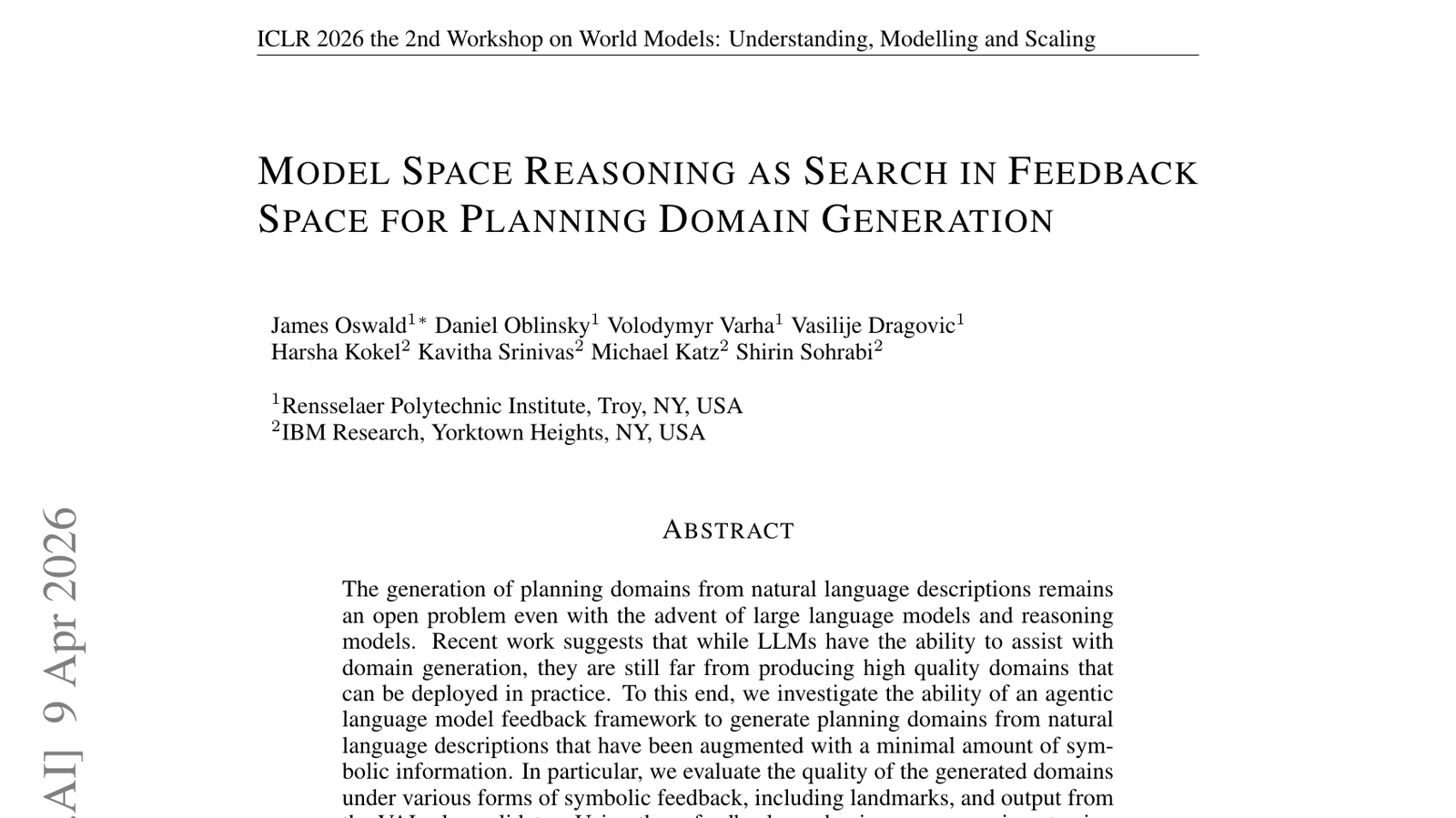자연어 설명으로부터 계획 도메인(planning domain)을 생성하는 문제는 대규모 언어 모델(LLM)과 추론의 출현에도 불구하고 여전히 해결되지 않은 과제입니다. 이 논문은 계획 도메인 생성을 위한 '피드백 공간 검색으로서의 모델 공간 추론'이라는 새로운 접근 방식을 제안합니다. 이는 AI가 주어진 자연어 목표로부터 가능한 계획 모델들을 생성하고, 외부 피드백(예: 실패한 계획 시도)을 통해 이 모델들을 반복적으로 개선하는 과정에 중점을 둡니다. 이 방법은 인간이 복잡한 문제를 해결할 때 시행착오를 통해 학습하는 방식과 유사하게, AI가 불완전한 정보로부터 실행 가능한 계획 도메인을 자율적으로 생성하고 정제할 수 있도록 합니다. 이는 자율 에이전트의 계획 능력과 적응성을 크게 향상시킬 수 있는 기술입니다. 복잡하고 동적인 환경에서 AI의 자율적 행동을 가능하게 하는 중요한 진전입니다.