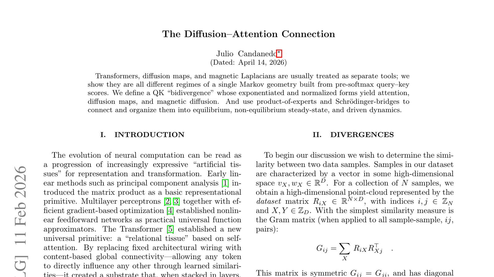 이 논문은 트랜스포머, 확산 맵, 마그네틱 라플라시안 등 일반적으로 별개의 도구로 취급되던 개념들이 사실은 '단일 마르코프 체인'의 다른 형태로 연결되어 있음을 보여줍니다— 이는 겉보기에는 다른 여러 머신러닝 모델들이 깊은 수학적 원리에서 서로 연관되어 있음을 밝혀내, AI 모델링에 대한 우리의 이해를 심화시킵니다— 연구자들은 이 연결을 통해 각 모델의 장점을 통합하거나, 새로운 하이브리드 아키텍처를 설계하는 데 영감을 얻을 수 있습니다— 예를 들어, 확산 모델의 강력한 생성 능력과 트랜스포머의 효율적인 장거리 의존성 학습 능력을 결합하는 새로운 접근 방식이 가능해질 수 있습니다— 이러한 이론적 발견은 AI 모델의 근본적인 메커니즘을 밝혀내고, 향후 더욱 일반적이고 강력한 인공지능 모델을 개발하는 데 중요한 이론적 기반을 제공할 것입니다— 다양한 분야의 기술 발전에 중요한 영향을 미칠 수 있는 기초 연구입니다.