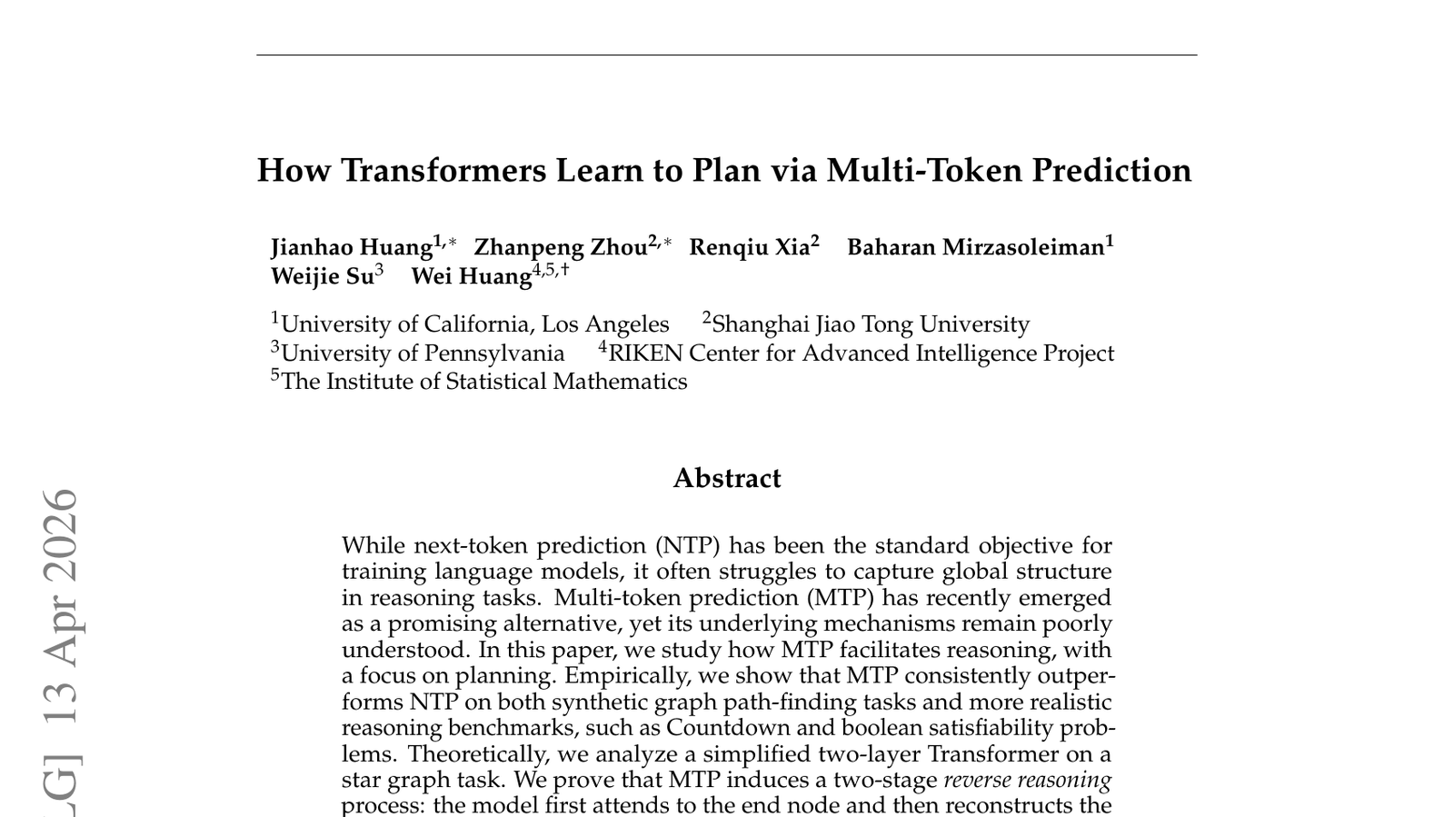 트랜스포머 모델이 다음 토큰 예측(next-token prediction, NTP)이라는 표준 학습 목표를 넘어, 멀티 토큰 예측(multi-token prediction)을 통해 어떻게 계획을 학습하는지에 대한 연구가 발표되었습니다— NTP는 언어 모델 훈련의 일반적인 방식이지만, 추론에서 전반적인 구조를 파악하는 데 어려움을 겪는 경우가 많습니다. 이 논문은 트랜스포머가 여러 토큰을 동시에 예측함으로써 복잡한 계획과 장기적인 의존성을 더 효과적으로 파악할 수 있음을 보여줍니다— 이는 AI 모델의 '사고' 또는 '계획' 능력을 향상시키는 데 중요한 진전을 의미하며, 단순한 패턴 인식에서 벗어나 더 깊이 있는 추론을 가능하게 합니다. 이러한 연구는 AI가 복잡한 문제 해결, 코드 생성, 심지어 과학적 발견에 이르는 다양한 영역에서 더욱 강력한 성능을 발휘할 수 있는 기반을 마련합니다— 결국, 멀티 토큰 예측은 LLM의 한계를 뛰어넘어 인간과 유사한 인지 능력을 모방하려는 시도 중 하나입니다.