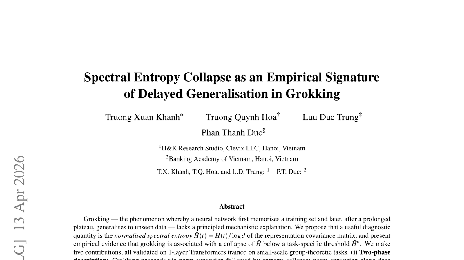 스펙트럼 엔트로피 붕괴를 통한 그로킹 현상 예측은 AI 모델의 복잡한 학습 과정을 해석하고, 일반화 시점을 파악하는 데 새로운 지표를 제시합니다—이는 AI 연구의 투명성과 예측 가능성을 높이는 데 기여할 것입니다.
