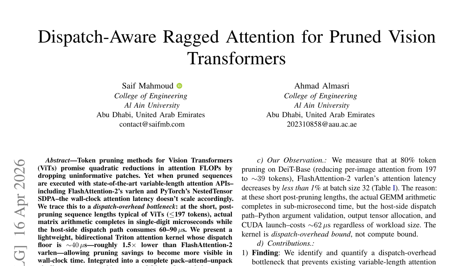 가지치기된 비전 트랜스포머를 위한 디스패치 인식 래그드 어텐션은 AI 모델의 하드웨어 효율성이라는 실질적인 문제를 해결합니다. 이는 비전 AI의 상용화와 모바일/엣지 환경 배포를 가속화하는 중요한 기술적 진전입니다.