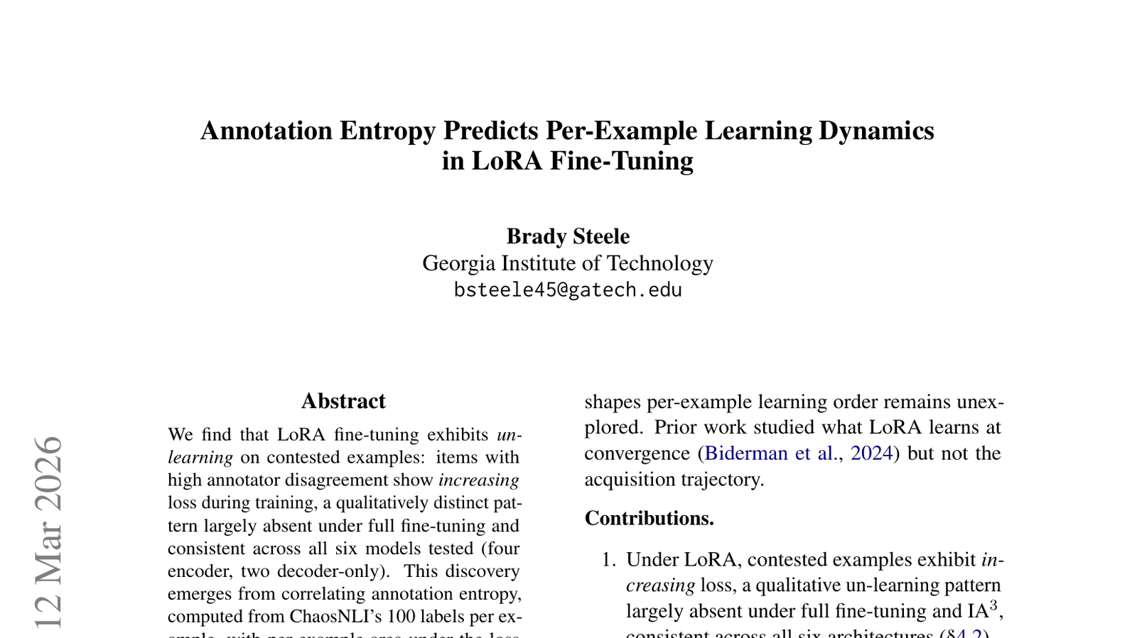 LoRA 미세 조정에서 어노테이션 엔트로피가 샘플별 학습 동역학 예측