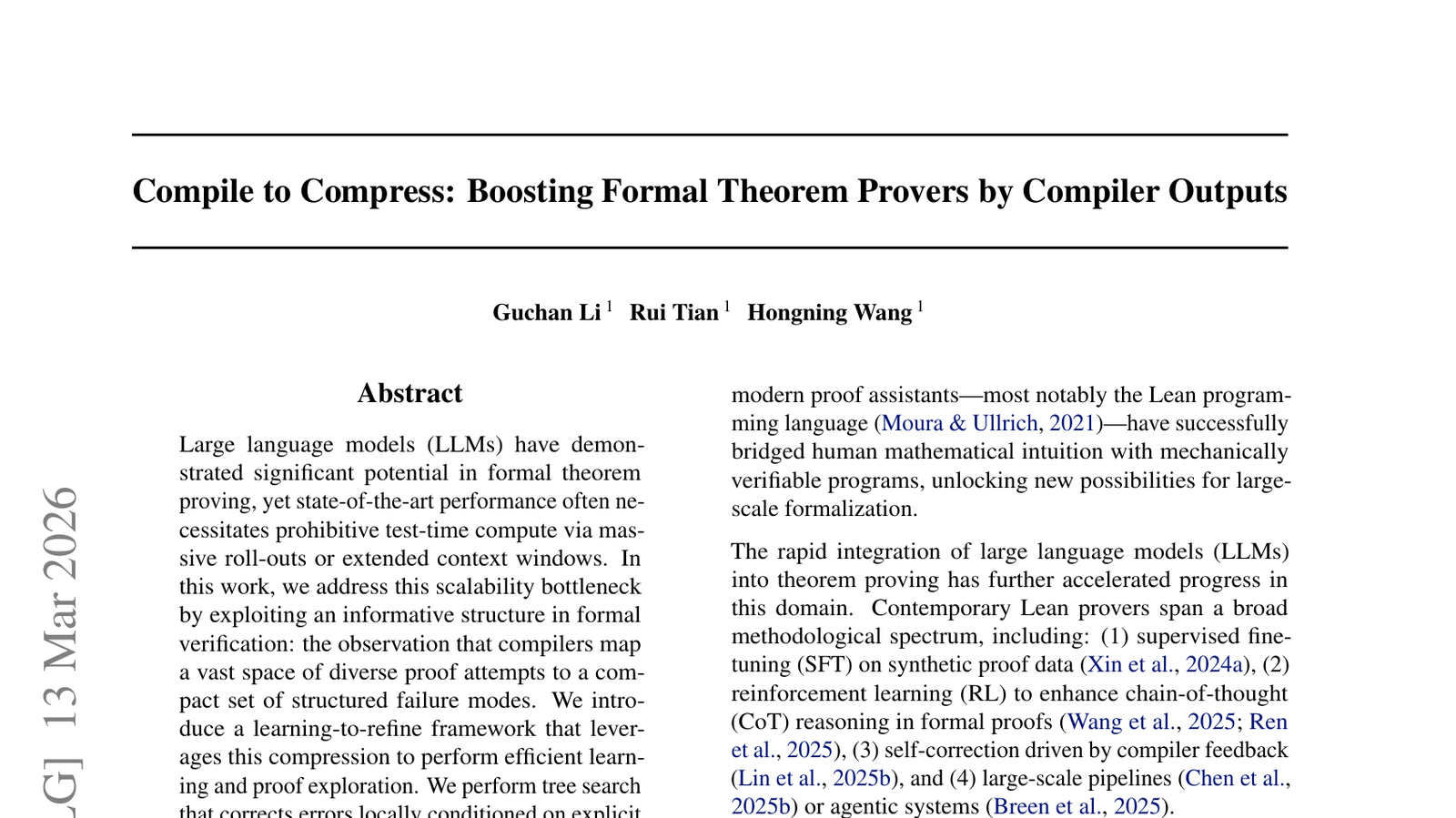대규모 언어 모델(LLM)은 형식 증명(formal theorem proving) 분야에서 상당한 잠재력을 보여주었지만, 최첨단 성능을 위해서는 종종 복잡한 프롬프트 엔지니어링이 필요했습니다. 이 논문은 컴파일러 출력을 활용하여 형식 증명기의 성능을 향상시키는 새로운 방법을 제안합니다. 코드를 컴파일하는 과정에서 생성되는 중간 표현이나 최적화 정보를 LLM에 제공함으로써, 모델이 더 효율적으로 증명을 생성하고 검증할 수 있도록 돕습니다. 이는 LLM의 추론 능력을 보완하고, 형식 검증의 복잡성을 줄이는 데 기여할 수 있습니다. 이 연구는 AI와 소프트웨어 공학의 접점에서 새로운 시너지를 창출할 가능성을 보여줍니다.