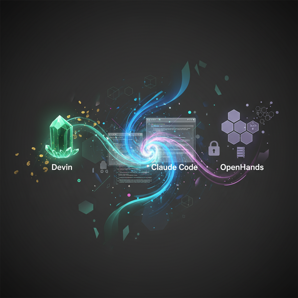 2026년 AI 코딩 에이전트 3강 — Devin(Cognition), Claude Code(Anthropic), OpenHands(오픈소스). Devin은 자율 실행에 강하지만 비용이 높고, Claude Code는 개발자 워크플로 통합과 코드 품질이 장점이며, OpenHands는 무료 자체 호스팅이 가능하다. 팀 규모, 예산, 보안 요건에 따라 선택이 달라진다.